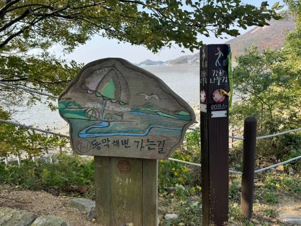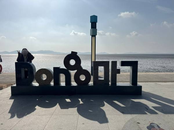 동막해변에는 특이한 포토존도 있습니다. '동막'이라는 글씨를 영문과 한글로 조합하여 화강암으로 만든 조형물이 있어 사진 찍기에 제격입니다. 강화도는 화강암 지형으로도 유명한데, 이처럼 자연과 역사, 예술이 공존하는 공간을 통해 여행의 풍성함을 더할 수 있습니다.