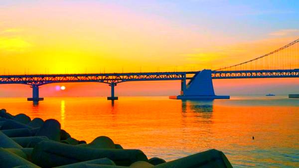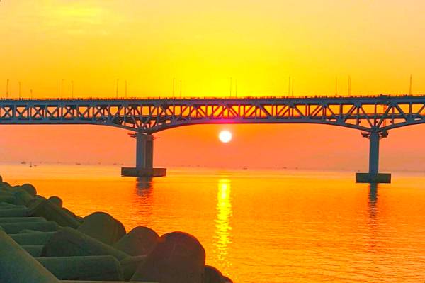 도시와 바다가 함께하는 황금빛 해돋이