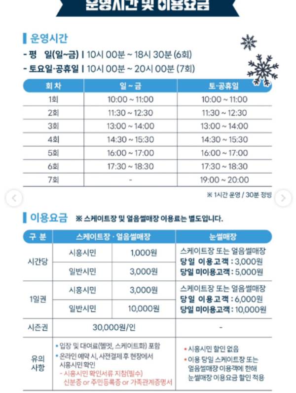- 얼음썰매장: 5세 이상 이용 가능 (신체 약자는 보호자 동반 필수)