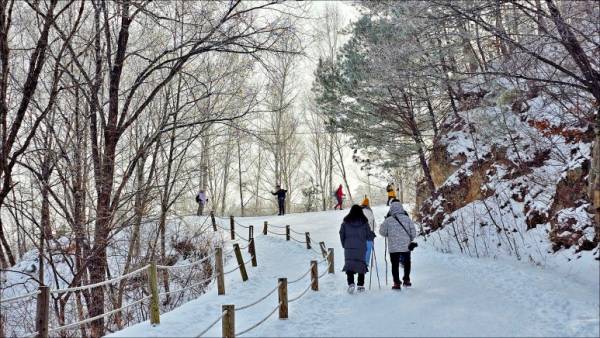 69만 그루의 자작나무가 빽빽이 들어선 인제 원대리 자작나무숲은 겨울철이면 설경과 어우러져 순백의 세계를 만듭니다. 트래킹 코스를 따라 걷다 보면 마치 동화 속에 들어온 듯한 느낌을 받을 수 있으며, 겨울철 아이젠 착용은 필수입니다.